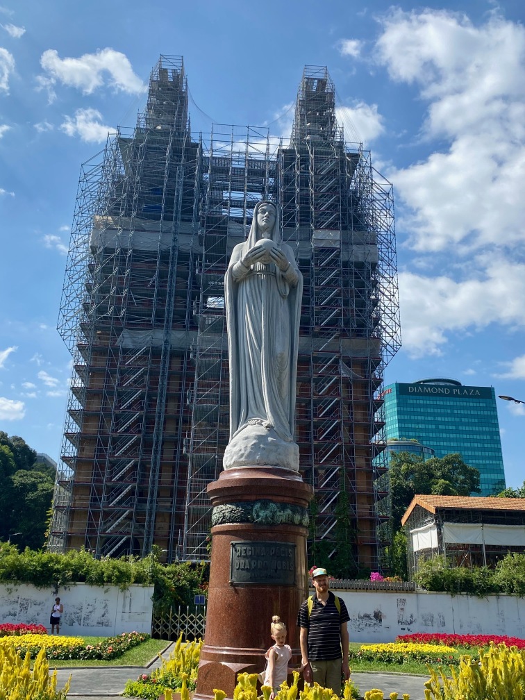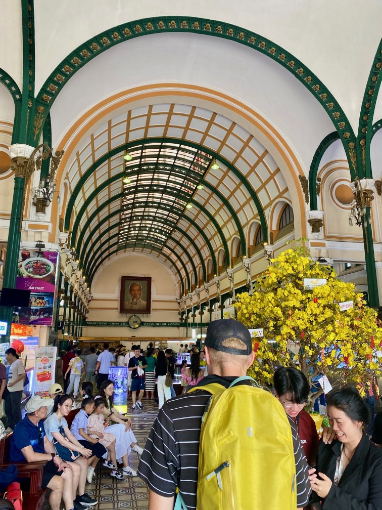Ho Chi Minh City Hall is an impressive building at the end of Nguyễn Huệ street - the main promenade for Tet celebrations which we walked up and down several times during our stay.The Notre Dame Cathedral was under construction.Saigon Central Post Office, one of Saigon’s most famous buildings.It is still a functioning post office, but more space is taken up by gift shops.Old architecture and maps are cool!The big guy himself!Saigon’s famous apartment cafes.Bến Thành Market is one of the earliest surviving structures in Ho Chi Minh City. It is always busy, selling everything from fruit to souvenirs, with a special emphasis on knockoff brand goods. The “sticker price” is always super inflated and intense haggling is required.Showing off some of our market purchases.Backseat selfie - we caught taxies everywhere! Like Indonesia, Vietnam driving is pure chaos.We attended a water puppet show.The puppeteers are behind a screen and the entire show takes place in a pool of water, with live music and singing!It was tons of fun, the puppeteers were incredible. Expectations exceeded!Ella bought a silk outfit and purse at the market.Delicious fresh food was everywhere! We used Happy Cow to find vegan restaurants. It added a bit of extra adventure to dining out, and it meant that we always found unusual and unique places to eat! The cheese on this baguette was made from cashews!We went to a yoga class in District 2. Despite being in the middle of the city, the path to the yoga studio was garden-like and it felt like we were in the country.Our yoga class was delightful but physically demanding! We were happy to find an instructor who taught bilingual classes. It was a fun highlight of our Saigon visit.We attended a show at the Saigon Opera House.The A O Show is a Cirque-du-Soleil-like show with a Vietnamese spin. Performers use dance and acrobatics to tell the story of an agrarian people who must adapt to urbanization.It was a fantastic and memorable show. No photos allowed, but we left deeply inspired by the talented and enthusiastic performers and musicians.
