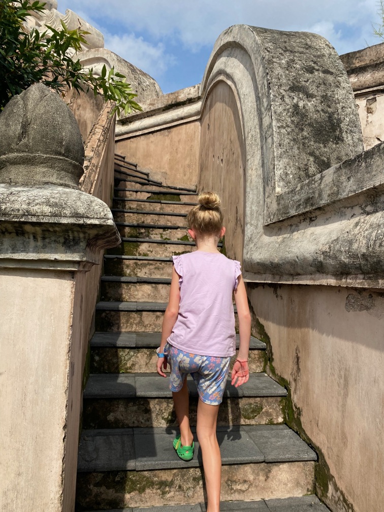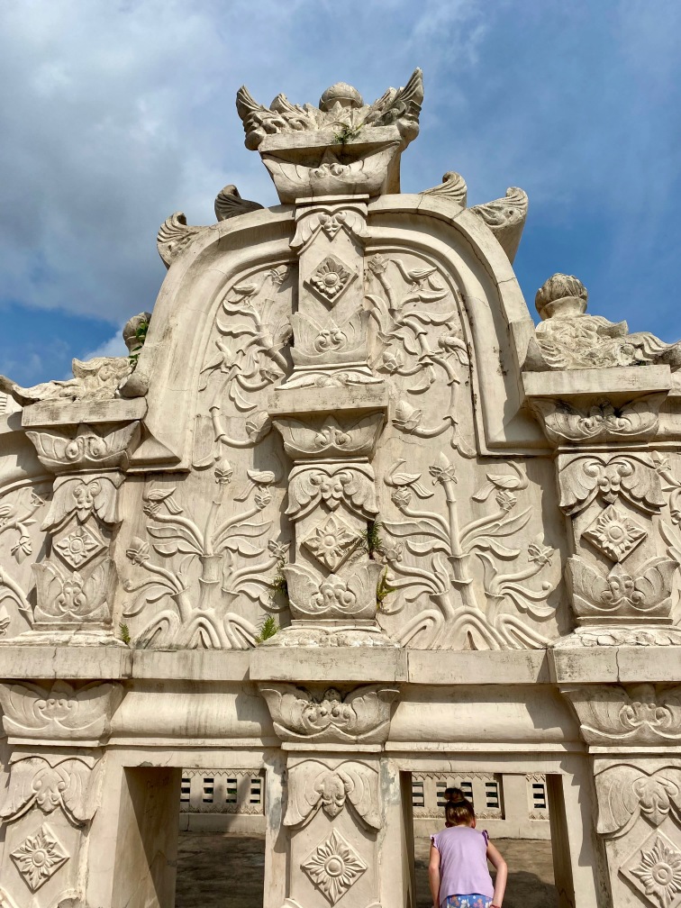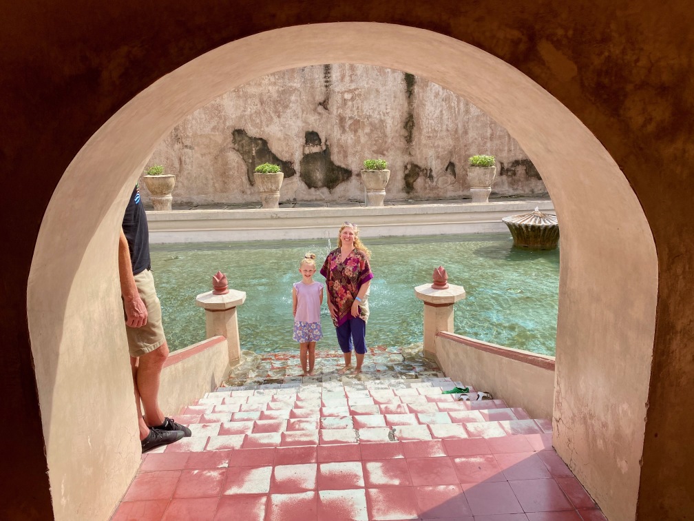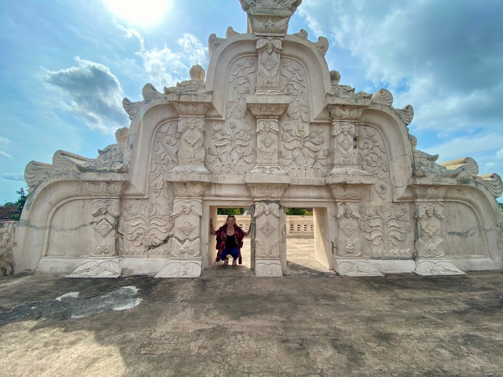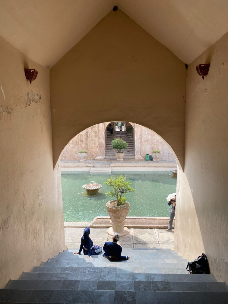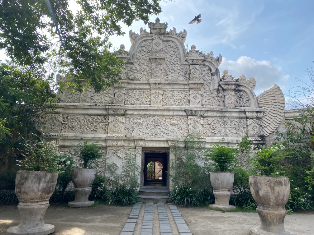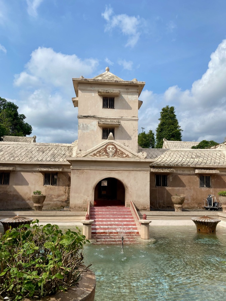 The construction of Taman Sari was completed in 1765. The complex included 59 buildings, featuring a mosque, meditation chambers, swimming pools, and 18 water gardens. Taman Sari suffered damage during the Java War of 1825 – 1830 and became disused after the 1867 earthquake. In the early 1970s, restoration efforts were initiated, with only the bathing complex being completely restored. The pools were designed for children, women, and the King. They were adorned with jasmine and other scented flowers, while cages in the corners held incense and aromatic delights that would be burned — a dream-like setting for Krista.