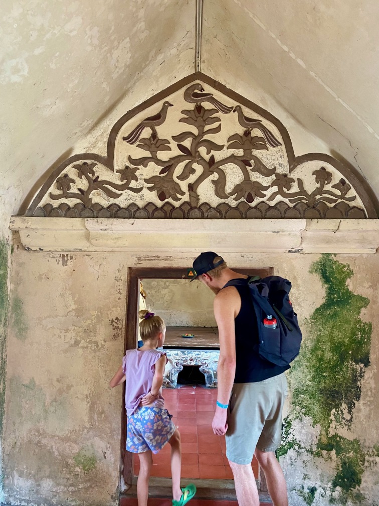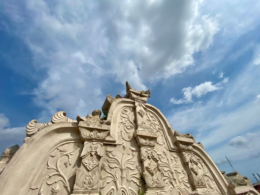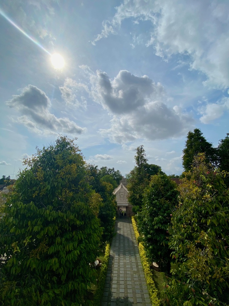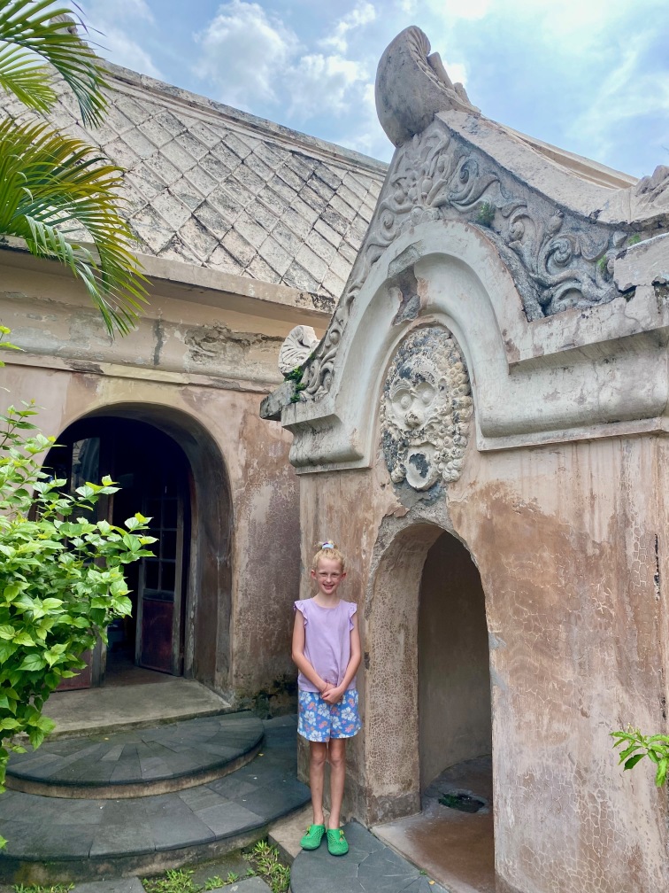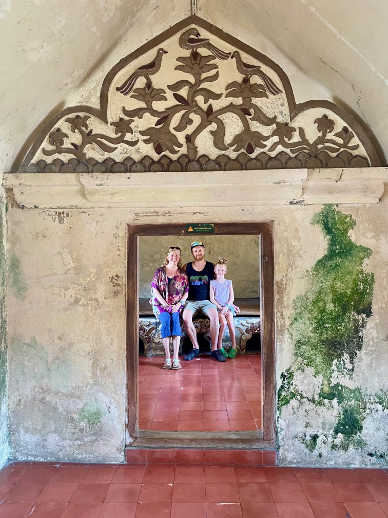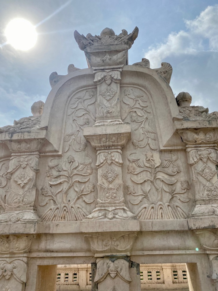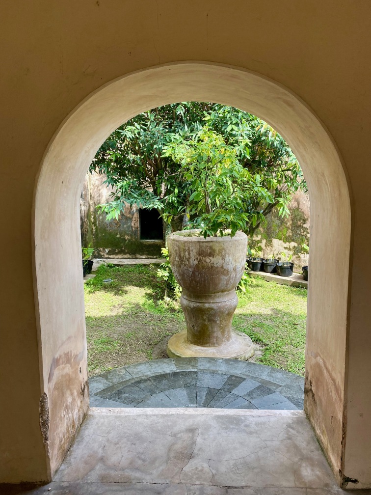 The construction of Taman Sari was completed in 1765. The complex included 59 buildings, featuring a mosque, meditation chambers, swimming pools, and 18 water gardens. Taman Sari suffered damage during the Java War of 1825 – 1830 and became disused after the 1867 earthquake. In the early 1970s, restoration efforts were initiated, with only the bathing complex being completely restored. The pools were designed for children, women, and the King. They were adorned with jasmine and other scented flowers, while cages in the corners held incense and aromatic delights that would be burned — a dream-like setting for Krista.