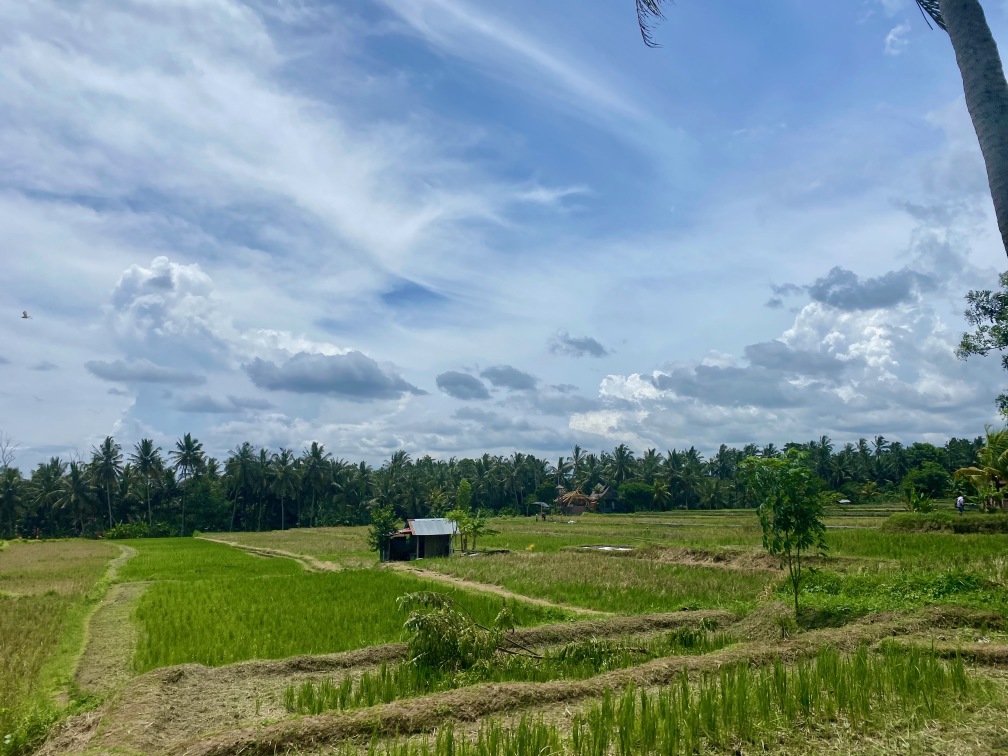 We walked through rice fields.