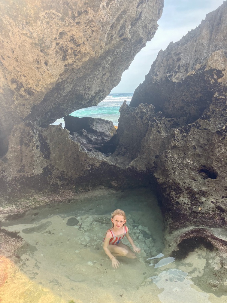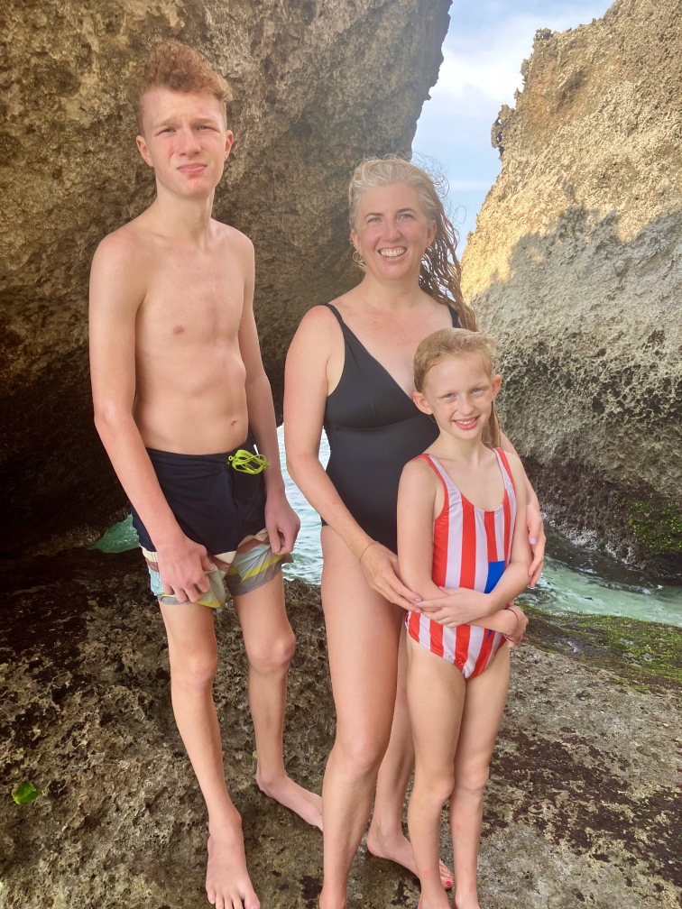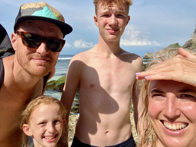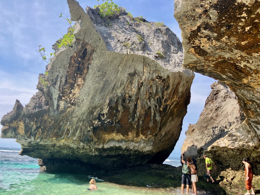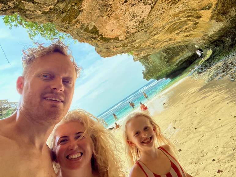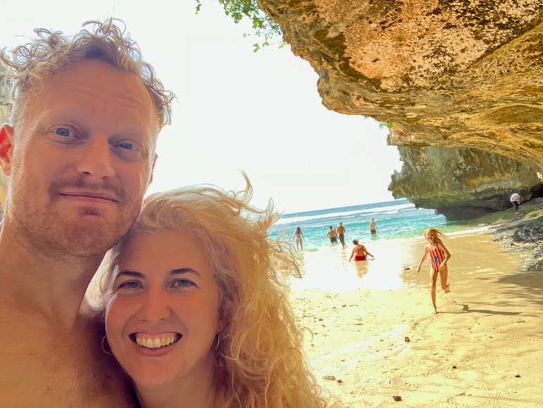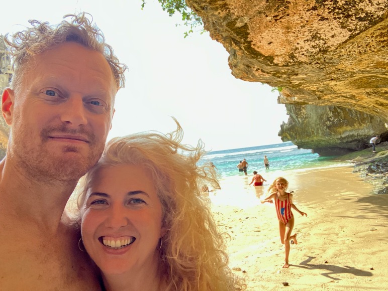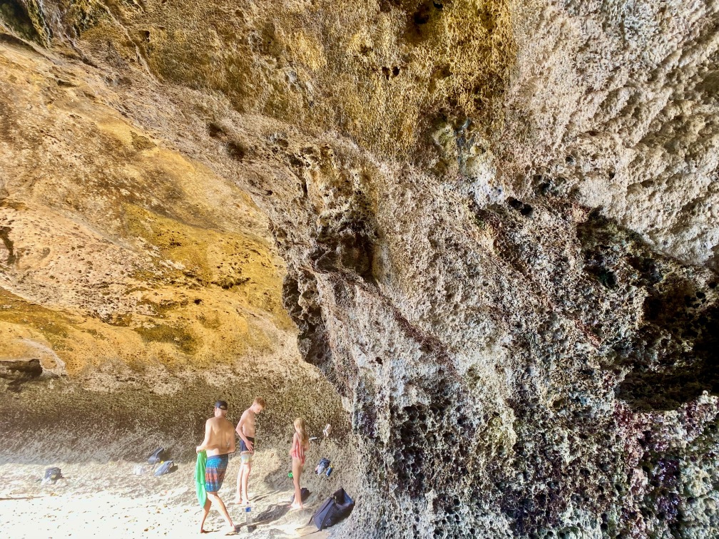 Uluwatu Beach is a narrow strip of beach at the southern tip of Bali between two cliffs, which is only accessible at low tide.