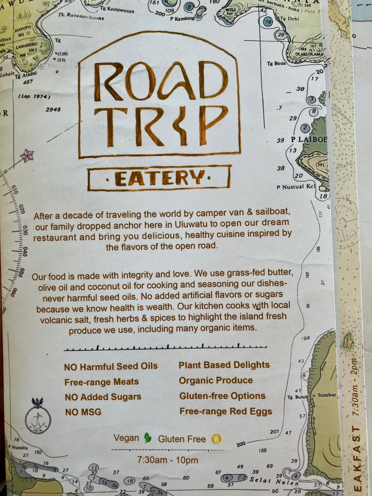 Uluwatu has many unique restaurant with distinct vibes, and dining out was a big part of our time there, so we thought we’d collect some menu memories in the blog!